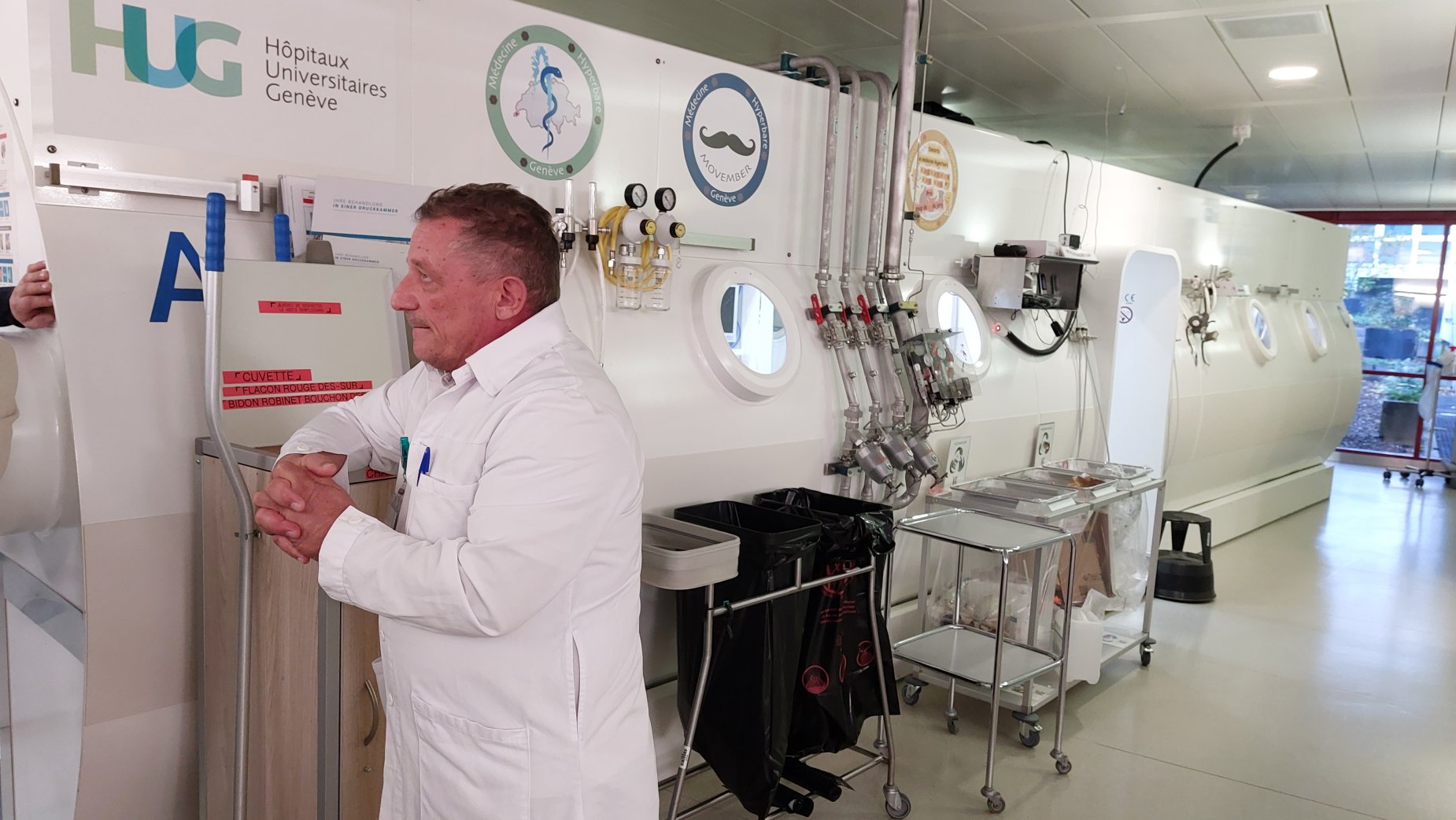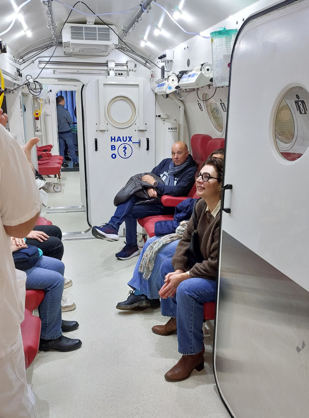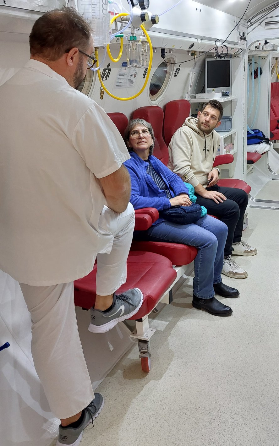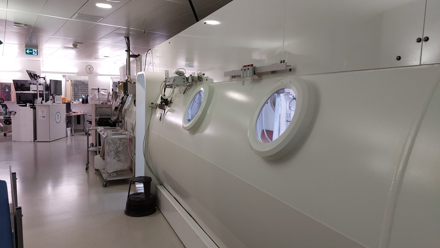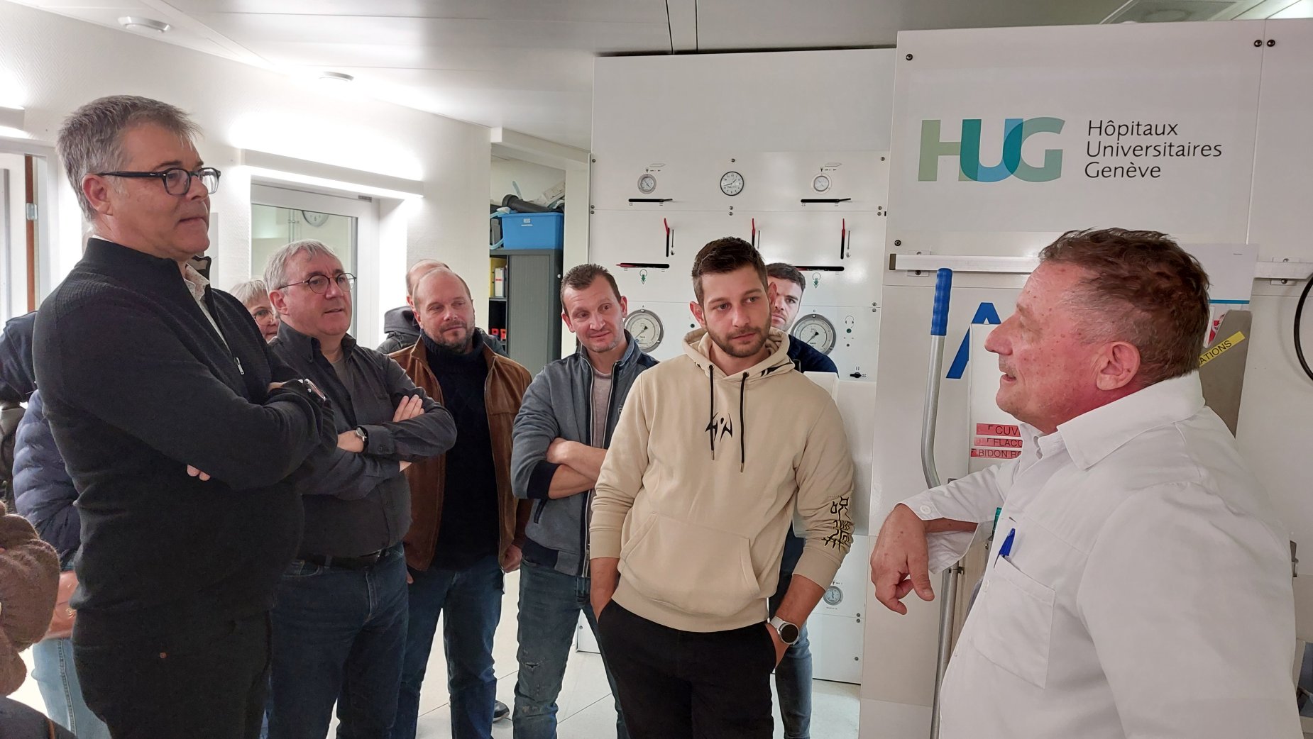 Une quinzaine de membres d'EXOCET LEMAN a eu l’occasion de visiter le caisson hyperbare des Hôpitaux Universitaires de Genève (HUG). Cette visite aussi instructive que captivante, a permis aux participants de mieux comprendre les aspects techniques et médicaux des interventions liées à la plongée.